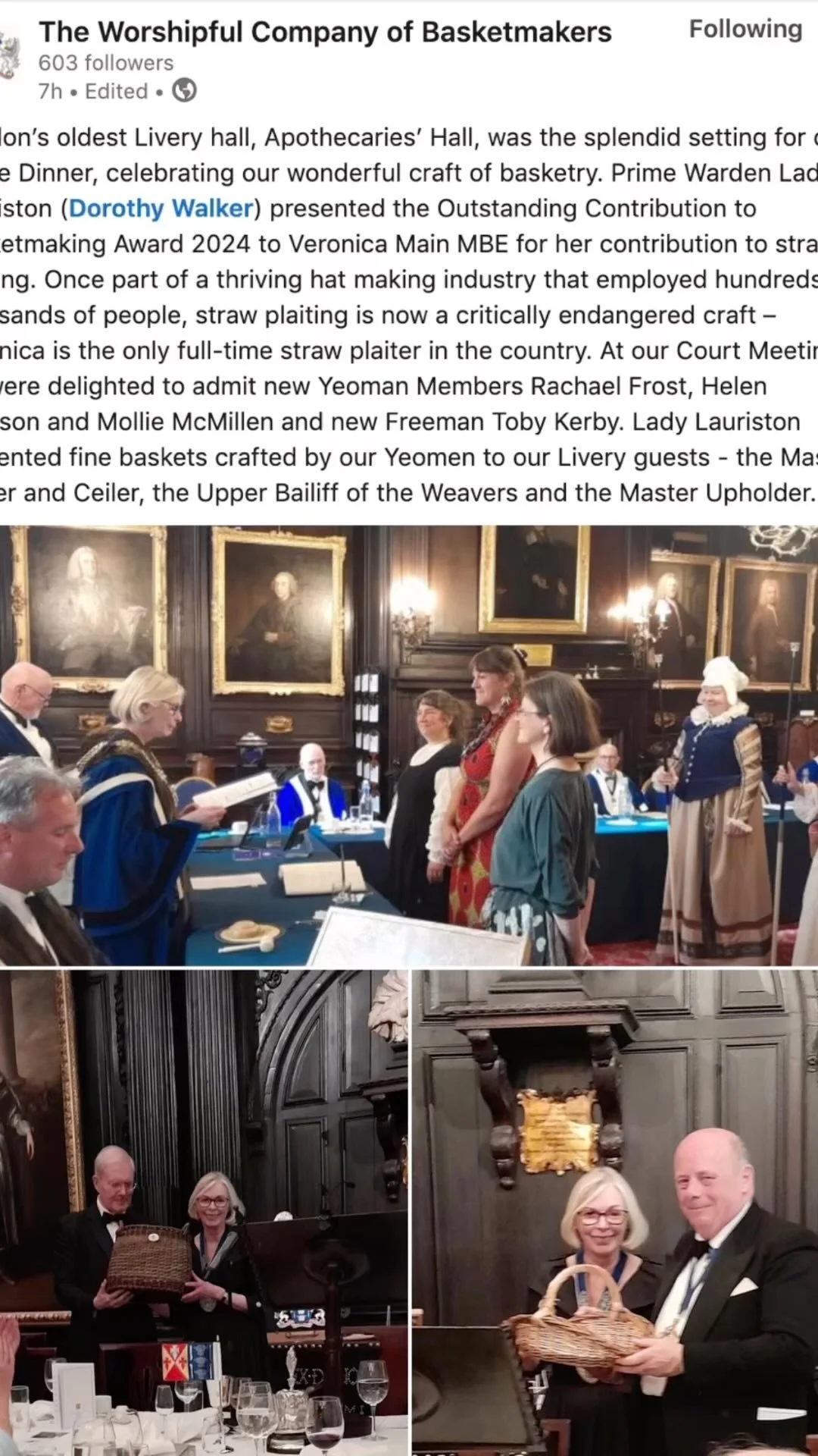 Veronica Main MBE is the most experienced traditional straw hat plaiter in the U.K. For more than forty years she has rigorously researched the hat industries of the U.K., Europe and the United States unlocking information and learning how to recreate plaits using authentic techniques by working as a forensic curator.
